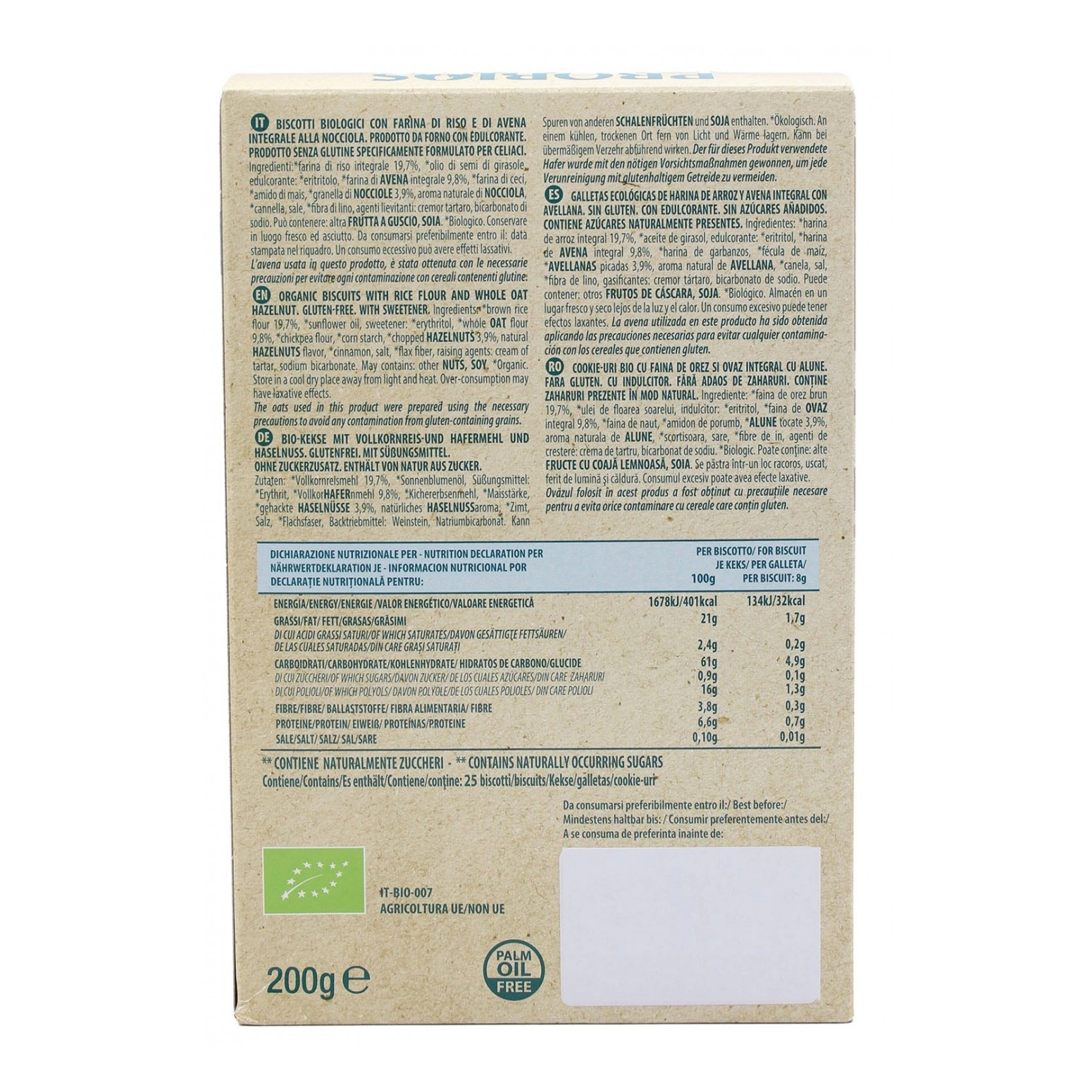 - acesti biscuiti fara zahar, certificati bio, vegani, sunt realizati din faina integrala de orez si faina de ovaz, si alune, oferind o noua modalitate de a lua un mic dejun fara zahar.