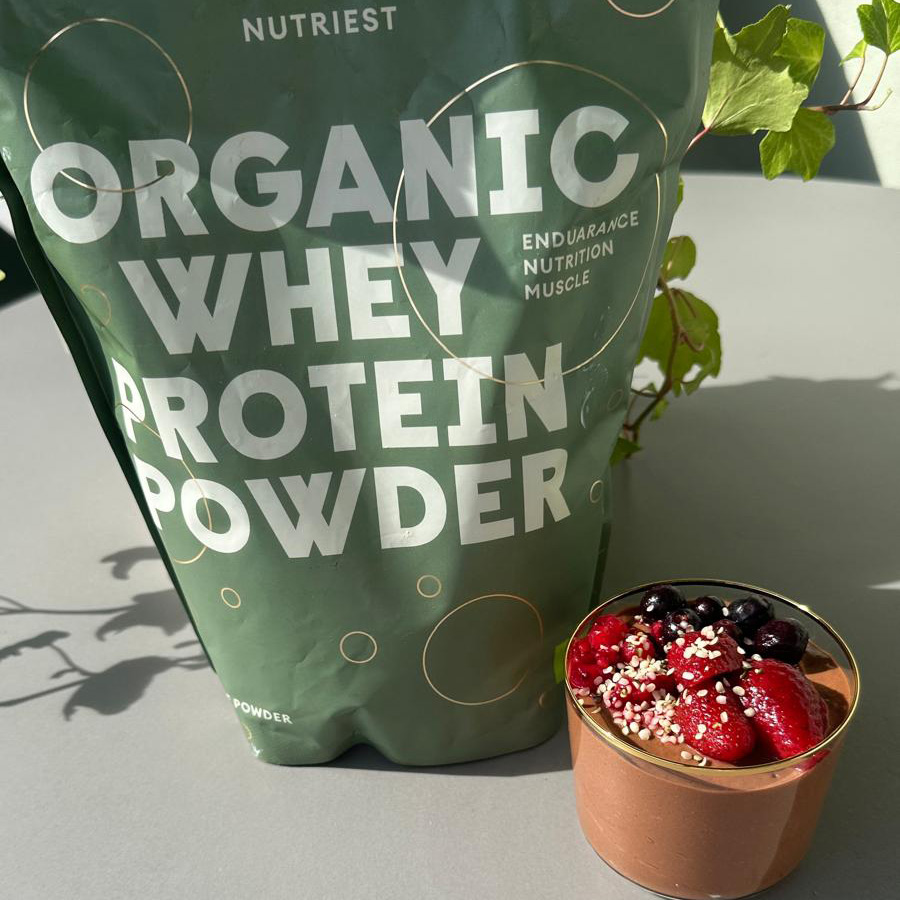 Proteina din zer ecologică, de la vaci hrănite cu iarbă, fără aditivi, susține dezvoltarea musculară, recuperarea și menținerea greutății.
